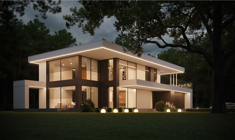 第一款:占地150平米,三層自建房,超大觀景露臺(tái)和露臺(tái),現(xiàn)代感十足;