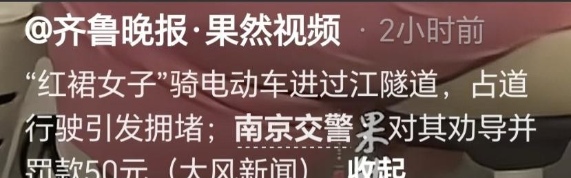 南京隧道女子騎電動車堵路被罰50元引爭議:普通人怎么看待這事