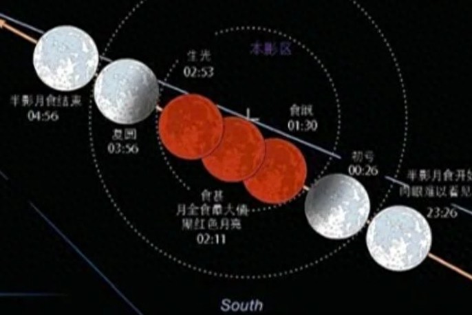 以下是本次月全食各階段的具體時(shí)間(北京時(shí)間):