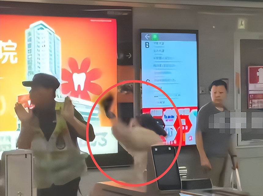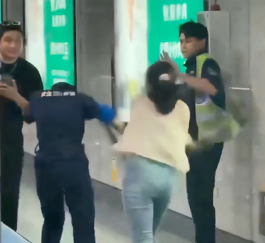 可這樣的動作不僅沒有讓女子意識到自己的行為是錯誤的,反倒讓她變本加厲的追打安檢員。