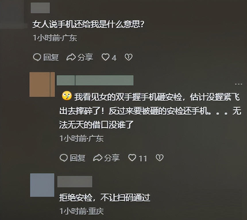 只是不少網(wǎng)友十分不解,女子究竟為何如此憤怒,難道僅僅是因?yàn)榫芙^安檢嗎?