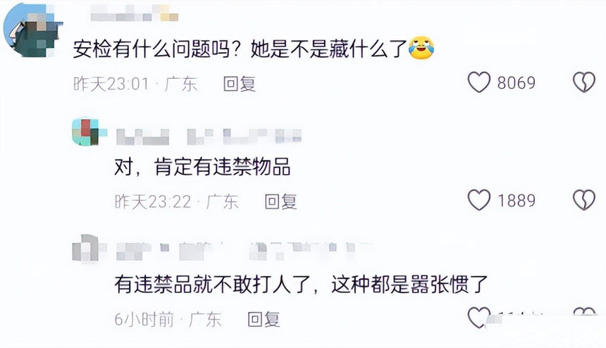 還有網(wǎng)友表示,女子本身拒絕安檢就是不對的,打人更是錯上加錯。