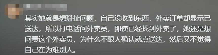 一女子拿到了錯送到隔壁的外賣后,依然對外賣小哥不依不饒。