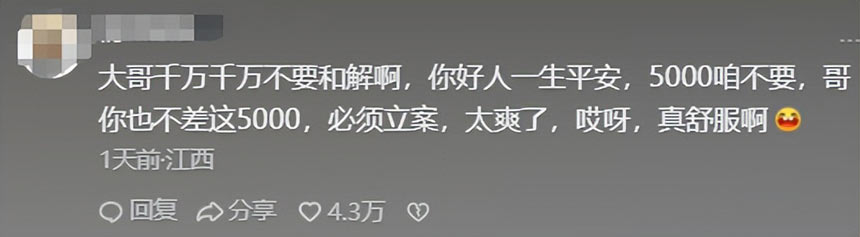 消息在網(wǎng)上傳開后,公眾的反響是巨大的。許多網(wǎng)友留言說,“這種人就該嚴懲,別和解!”,“老板太有骨氣了,支持到底!”。