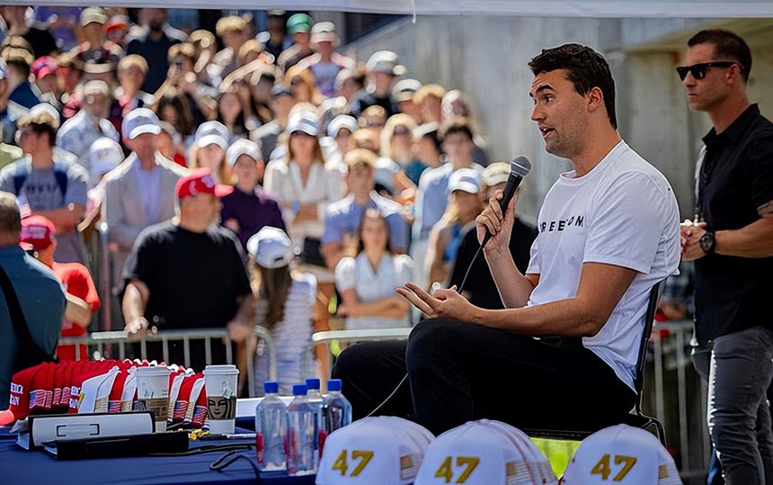 柯克生于1993年,年僅18歲便投身政治行動,2012年與人共同創(chuàng)立“轉(zhuǎn)折點美國”(Turning Point USA),致力于在美國校園傳播保守主義理念。