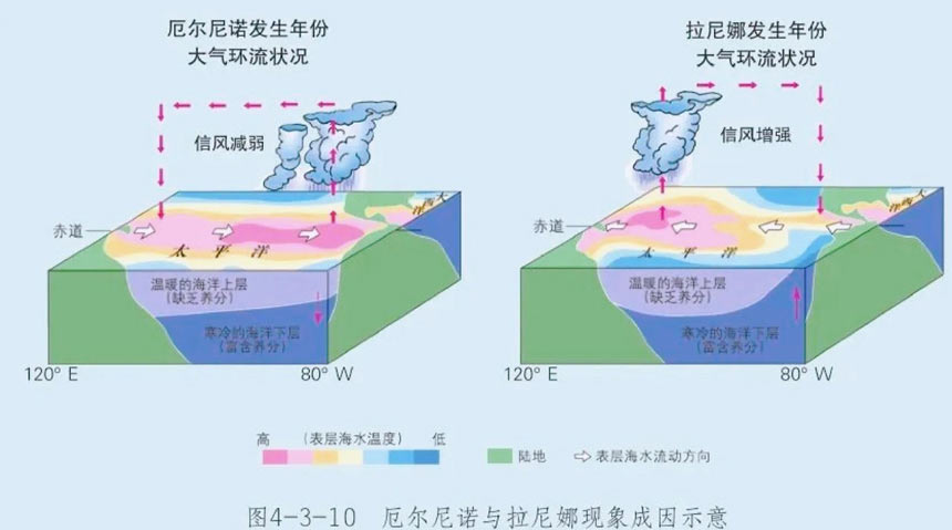 這里我簡單說明一下什么是拉尼娜,可能很多人都不知道,其實它就是跟厄爾尼諾現(xiàn)象具有相反效應(yīng)的現(xiàn)象,氣象學(xué)家用以指赤道太平洋東部和中部海表溫度大范圍持續(xù)異常變冷的現(xiàn)象,也稱為反厄爾尼諾。