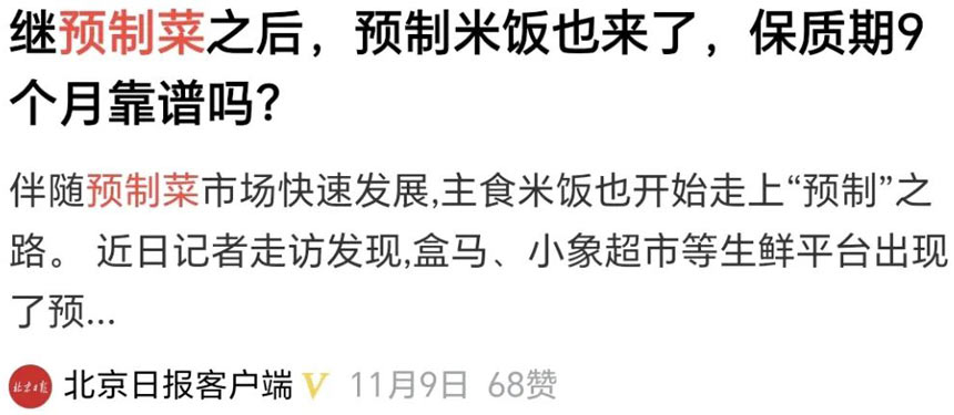 再有!聽說現(xiàn)在不只是有預(yù)制菜,還有預(yù)制米飯。