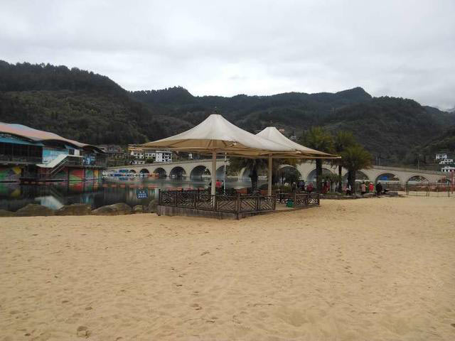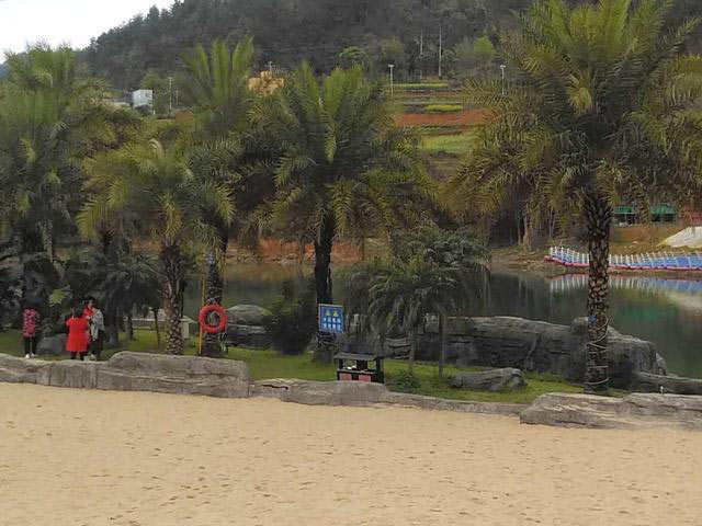萬盛板遼湖金沙灘,人工營造海島風(fēng)情,離關(guān)壩鎮(zhèn)涼風(fēng)村村委會不遠(yuǎn)