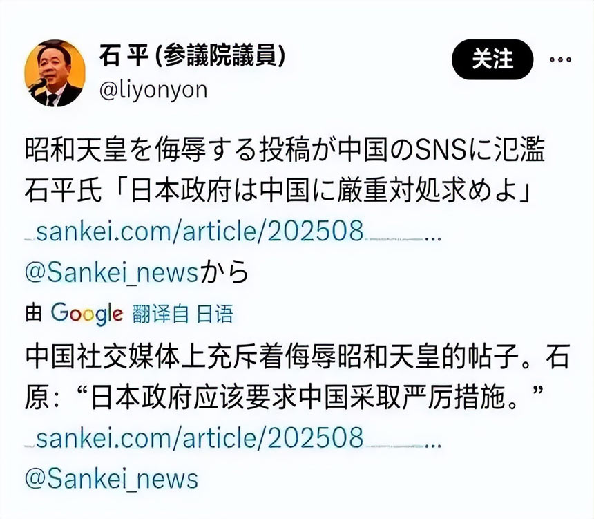 日本卻一直推三阻四,甚至公然參拜靖國神社。石平正是知道我們的不滿,所以才會關(guān)注網(wǎng)友的舉動,希望能夠在主子面前買好。