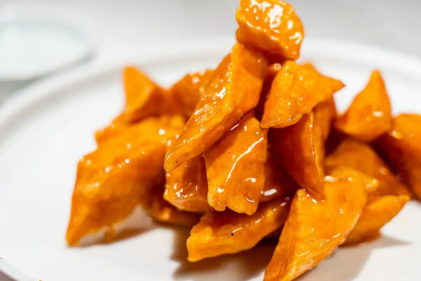 典型代表有紅燒茄子、魚香茄子、糖醋藕片、拔絲紅薯、炸藕盒等。雖說茄子、藕、紅薯本身升糖指數(shù)不高,但紅燒、糖醋、拔絲等烹飪方式,添加了大量糖和油,顯著提高了整體熱量與糖負荷,將蔬菜轉變?yōu)楦呱鞘澄?/span>。