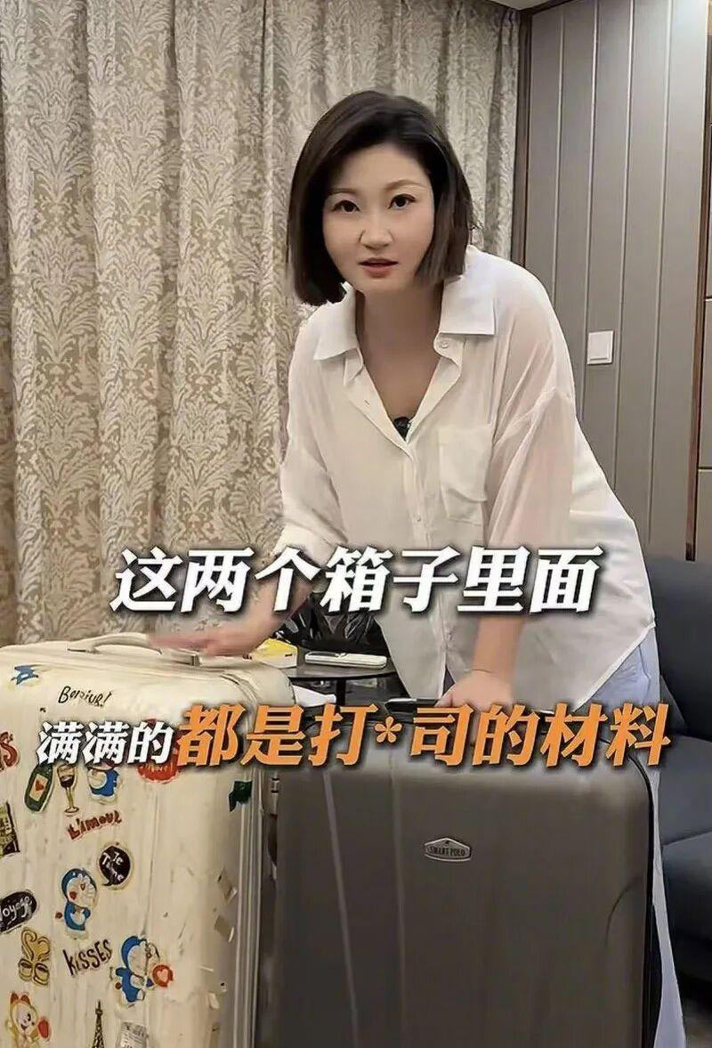 她在視頻中展示了兩個(gè)裝滿打官司所需材料的行李箱,其中一個(gè)箱子裝的是刑事案件的材料,另一個(gè)箱子裝的是離婚案件的材料。