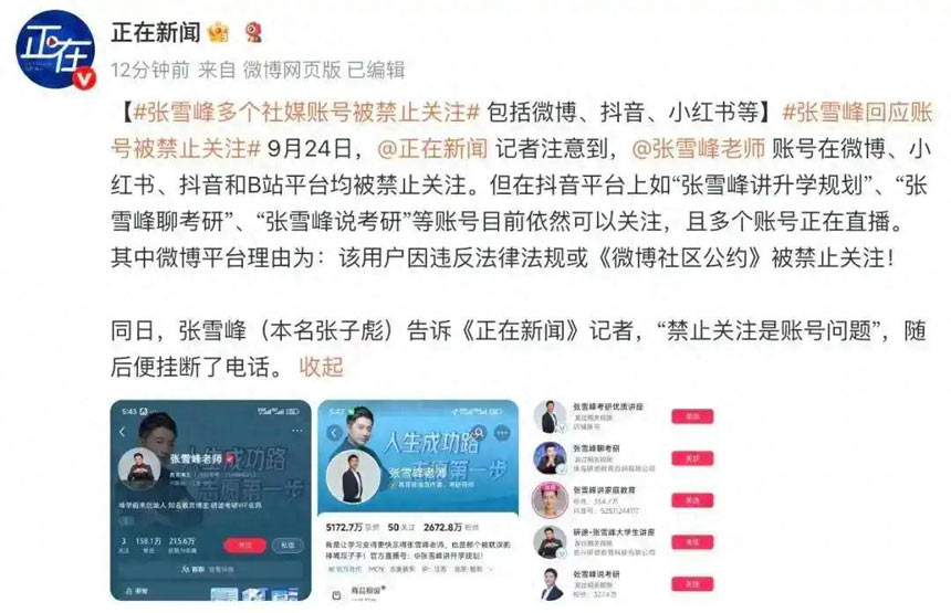 憑借對教育事業(yè)的剖析收獲了很高的人氣,而最近張雪峰再次闖了大禍,受到了不小的輿論壓力。