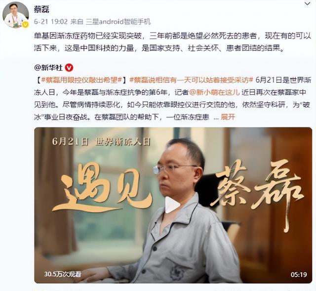 今年3月,他徹底說不出話,AI語音卻第一次用他自己的聲音開了口:“大家好,我是蔡磊,今天不上鏈接,上希望。