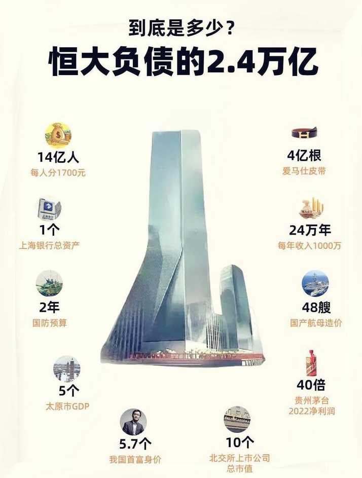 5、面對(duì)恒大高達(dá)2.4萬億的債務(wù),截止到目前,清盤所得到的錢依然是杯水車薪。