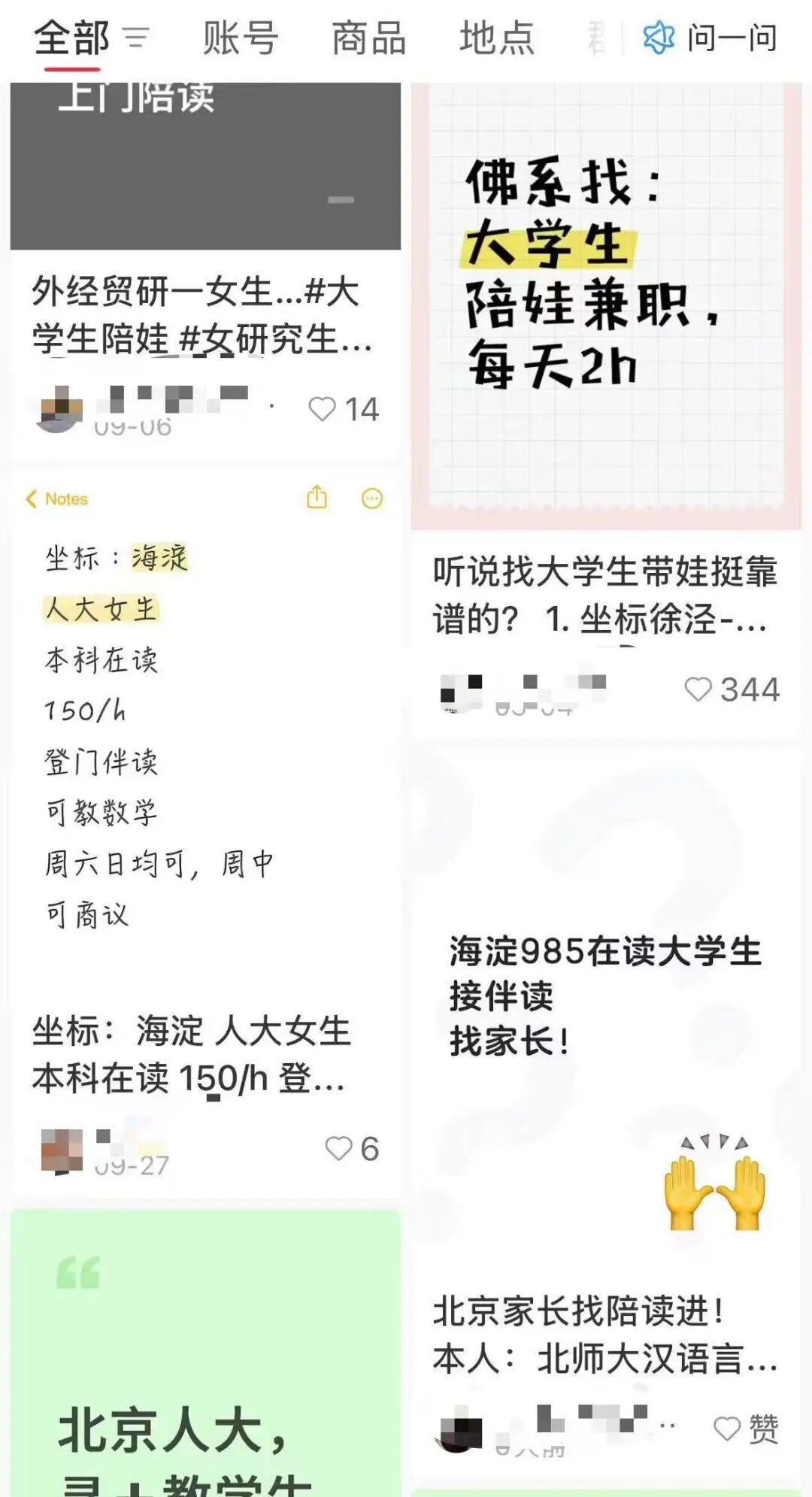 ▲社交媒體上,家長們在尋找陪讀服務(wù),大學生們在尋找兼職。某社交平臺截圖