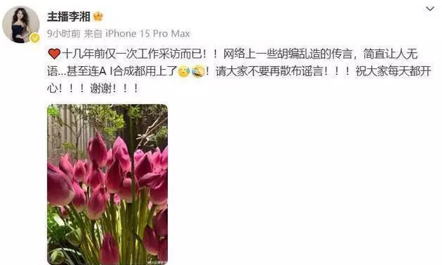 李湘同劉芳菲一樣,也澄清兩人的交集只是一次正常的工作而已,至于視頻則是網(wǎng)友偽造的,希望大家不要再亂傳了。