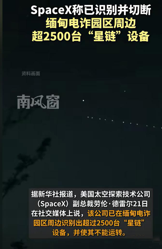 10 月 22 號這天,國際上炸出個(gè)大新聞 ——Space X 突然出手,把緬甸電詐園區(qū)周邊的 2500 多臺星鏈設(shè)備全給掐斷了。