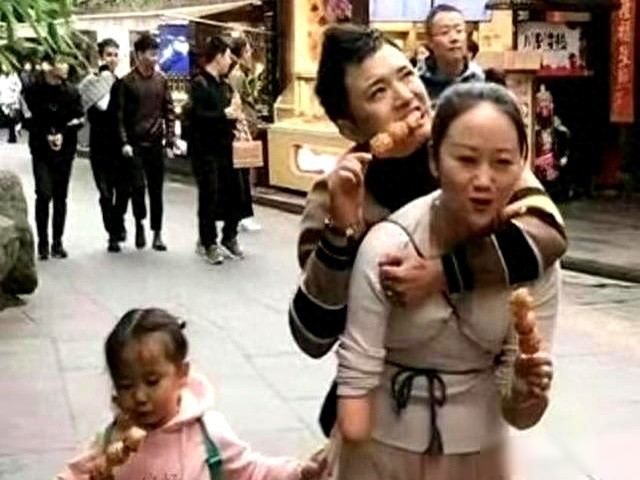 他就拉著阿嬌一起拍視頻,阿嬌背著他上下樓梯,用一只手洗衣服做飯,孩子哭鬧也是她來哄,