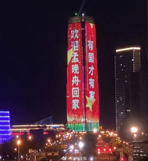 這也就解釋了為什么昨晚宜興最高建筑會(huì)為她亮燈錫宜是一體,明月無(wú)兩鄉(xiāng)昨晚242米高的宜興陶都半島酒店打出巨幅燈光海報(bào):有國(guó)才有家歡迎孟晚舟回家