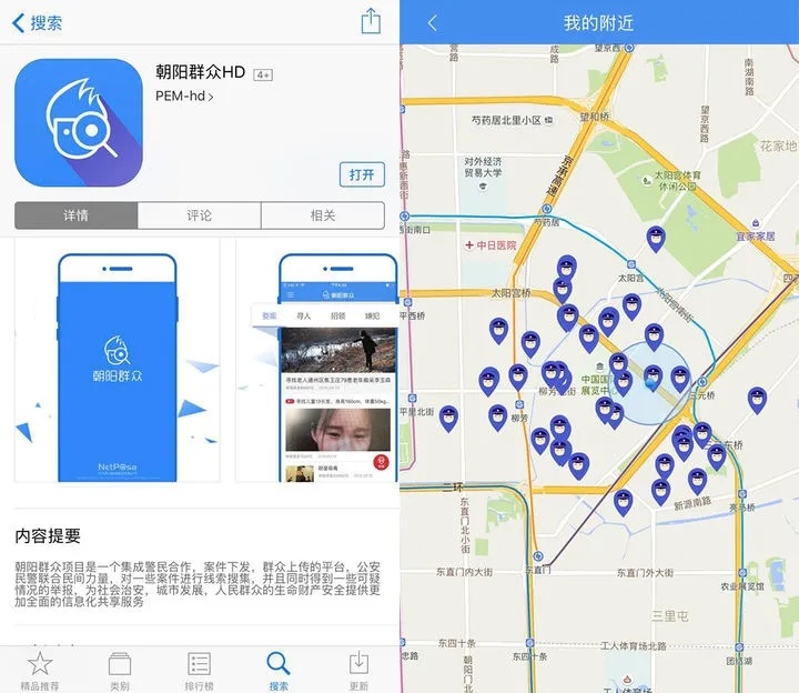 2017年,朝陽區(qū)警方還研發(fā)了一款名為“朝陽群眾 HD”的手機(jī) App 程序,以方便警民之間更好地就案件線索進(jìn)行交流。