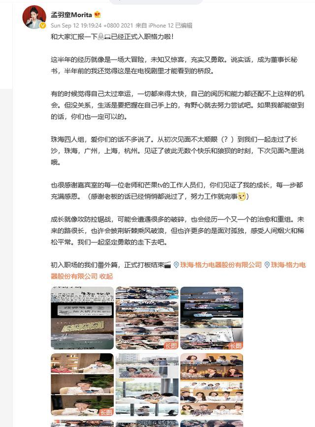 hello大家好~我是孟羽童小孟,跟大家匯報(bào)一下:我現(xiàn)在已經(jīng)正式入職格力兩個(gè)月了,擔(dān)任的職位是格力電器董事長董總的秘書。