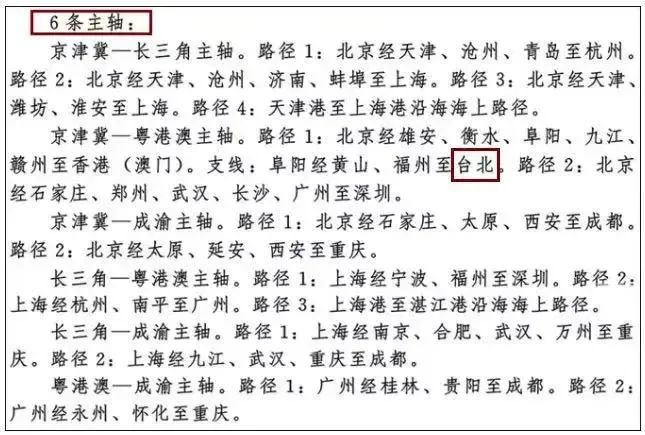 而臺北就被規(guī)劃在京津冀—粵港澳這條主軸當中。