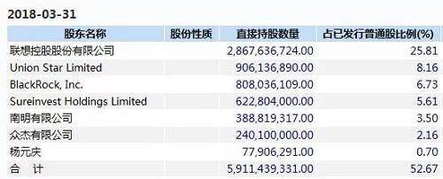 經(jīng)過柳傳志多年的輾轉(zhuǎn)騰挪,聯(lián)想控股也在香港上市,根據(jù)2018年6月30日的官方公告,它的主要股東如下: