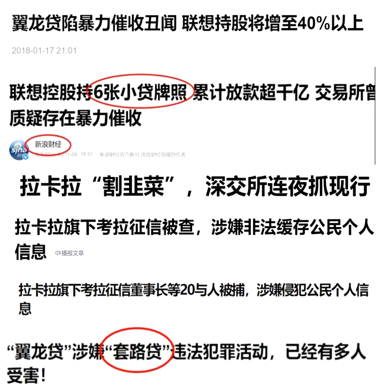 圖片收集:申鵬查詢柳傳志搭建的業(yè)務版圖可知,在金融服務板塊,聯(lián)想控股在盧森堡國際銀行持股達89.936%,在正奇金融持股達82.52%,在考拉科技持股達51%,在拉卡拉支付持股達28.24%,為第一大股東,在北京同城翼龍網(wǎng)絡科技有限公司(翼龍貸)持股33.33%!……,翼龍貸和拉卡拉等,皆屬于聯(lián)想戰(zhàn)略重倉持股標的。