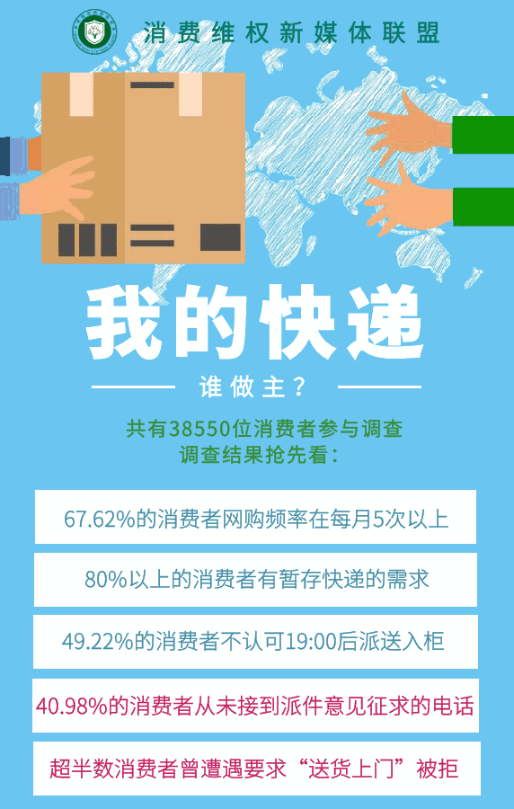 為了解各家快遞公司的快遞投遞情況及消費者對快遞柜收費的態(tài)度,消費維權(quán)新媒體聯(lián)盟聯(lián)合各地消協(xié)消保委組織共同開展“智能快遞柜寄遞服務(wù)意愿調(diào)查”。