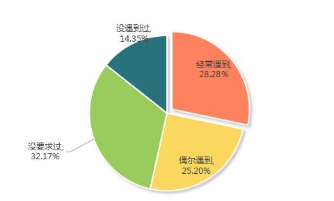 28.28%的調(diào)查對象經(jīng)常遇到要求“送貨上門”被拒的情況;25.20%的調(diào)查對象偶爾遇到。
