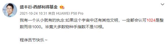 他還非常理科男的在微博中表示,他從小就有執(zhí)念,認(rèn)為宇宙中的其他文明一定會認(rèn)可1024是整數(shù)。