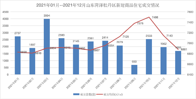 從易居研究院監(jiān)測數(shù)據(jù)來看,2021年下半年,菏澤市房地產(chǎn)市場迅速降溫。菏澤市牡丹區(qū)新房銷售在2021年10月達(dá)到階段性高點(diǎn)之后,無論是成交量還是成交均價(jià)均迅速回落。