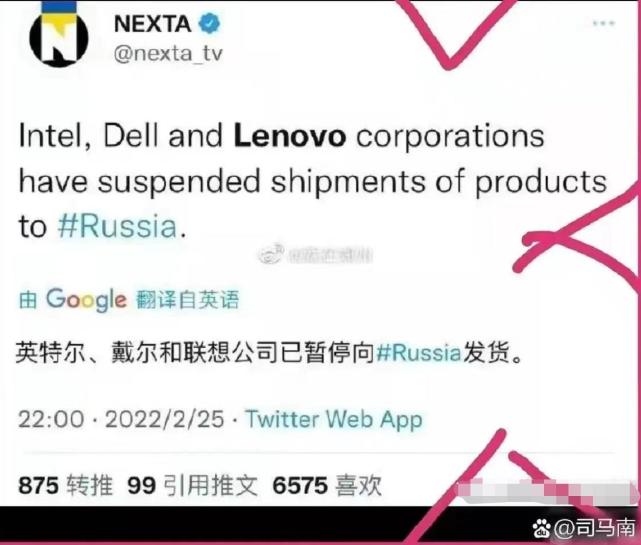 據(jù)悉,司馬南在社交媒體發(fā)布了一張圖片,內(nèi)容是聯(lián)想與英特爾、戴爾等企業(yè)暫時(shí)向俄發(fā)貨。