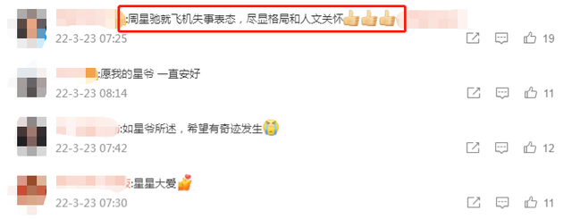 周星馳的發(fā)聲獲得了無數(shù)網(wǎng)友的支持,更有人大贊周星馳對待飛機失事的態(tài)度盡顯格局和人文關(guān)懷。