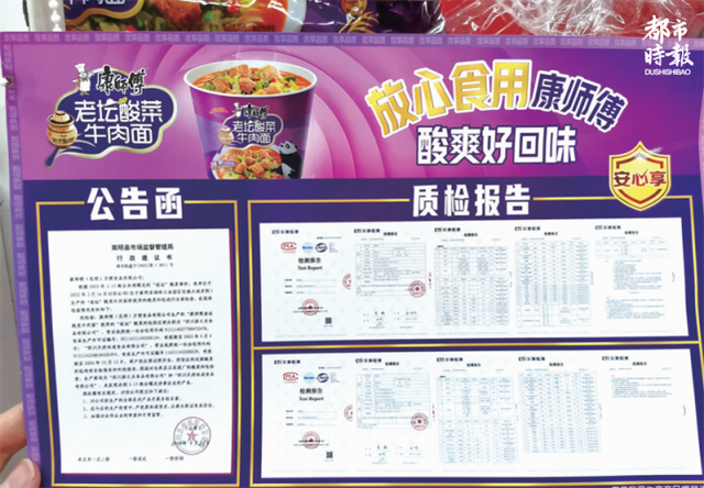 銷售老壇酸菜方便面的貨架顯眼位置張貼有相關(guān)文件