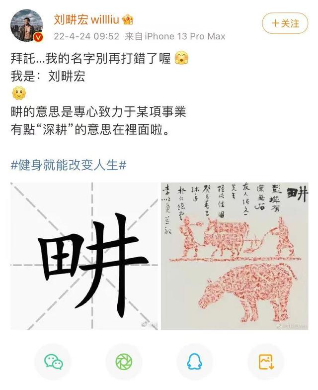 劉畊宏真的紅了,他喊話網(wǎng)友不要將他的名字寫錯,特別是“畊”字,有人寫成耕地的“耕”,劉畊宏說自己的“畊”字寓意是專心致力于某項事業(yè),有點“深耕”的意思。