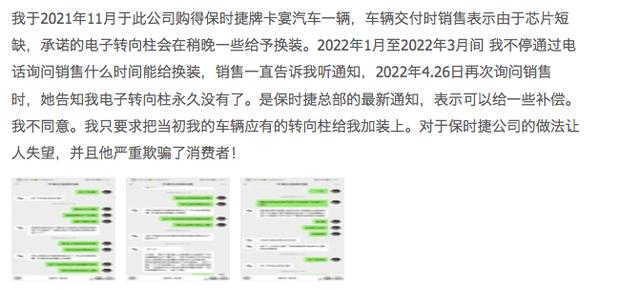 首先,保時捷車主們投訴的原因就是因為自己的車被減配了,在車主不知道的情況下,將部分車輛的帶電動調(diào)節(jié)功能的轉(zhuǎn)向柱更換成為了手動調(diào)節(jié)轉(zhuǎn)向柱,這一點讓車主們非常的不滿意。減配可以理解,但是也不能把車主當傻子,如果事先告知就不會發(fā)生這樣的問題了。