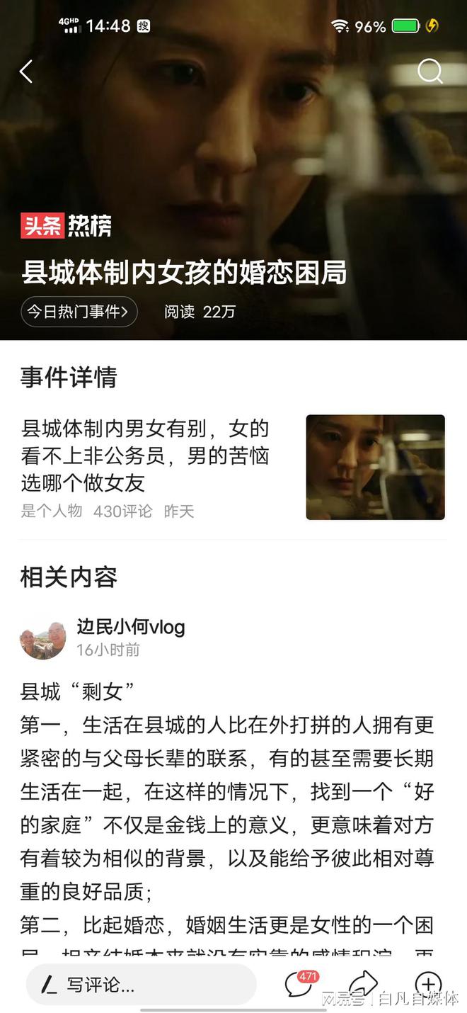 縣城體制內(nèi)女孩的婚戀困局#縣城體制內(nèi)女生陷入婚戀困境,與體制內(nèi)女生期望值較高的因素有關;另一方面,與內(nèi)卷因素有關。但是,更關鍵的問題是,過去一些輿論引導了攀比之風,現(xiàn)在的婚姻已經(jīng)不像過去那么純粹了,似乎考慮到了一些經(jīng)濟利益。